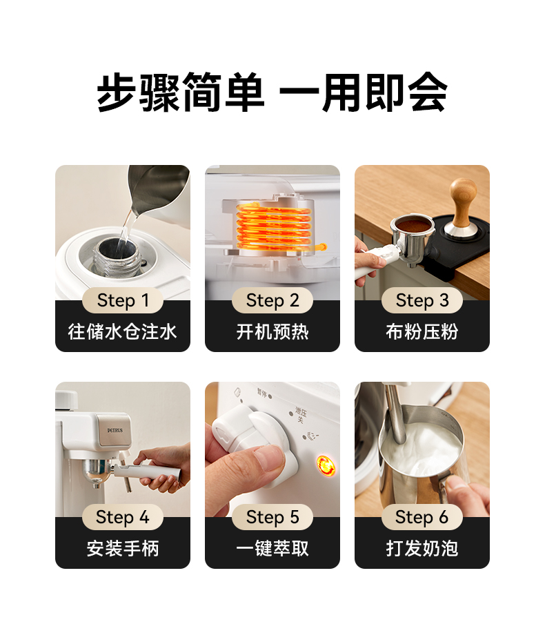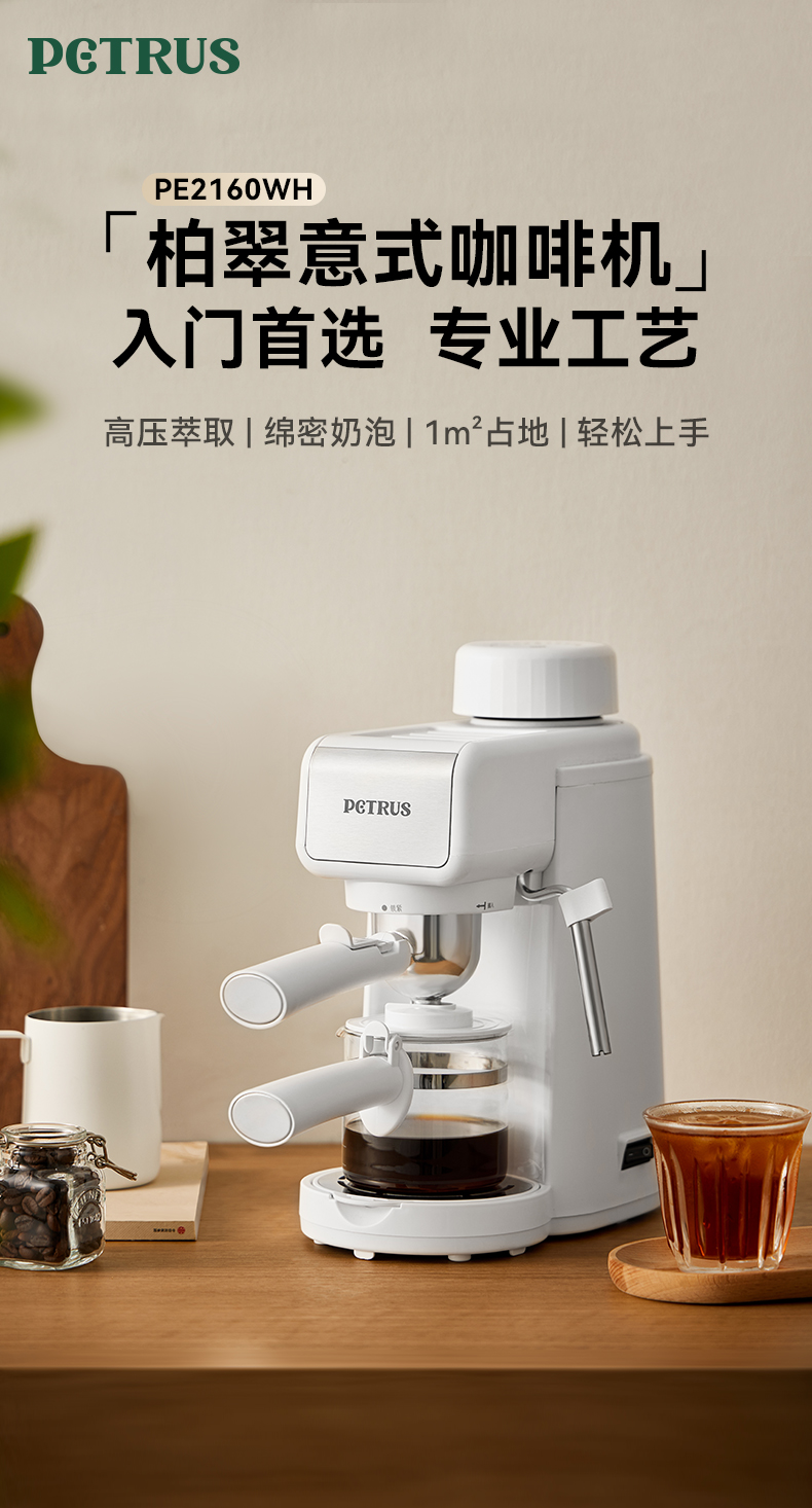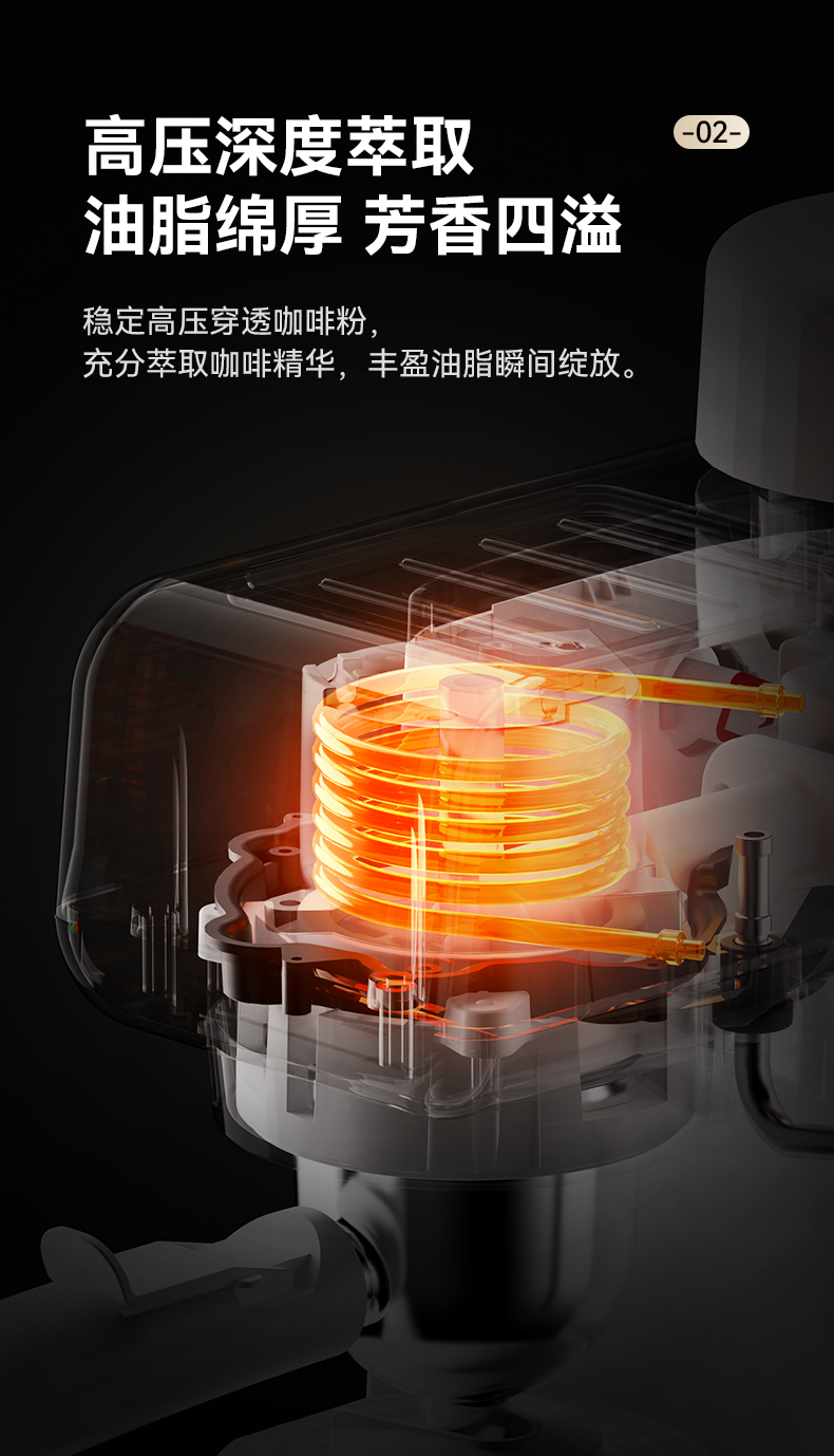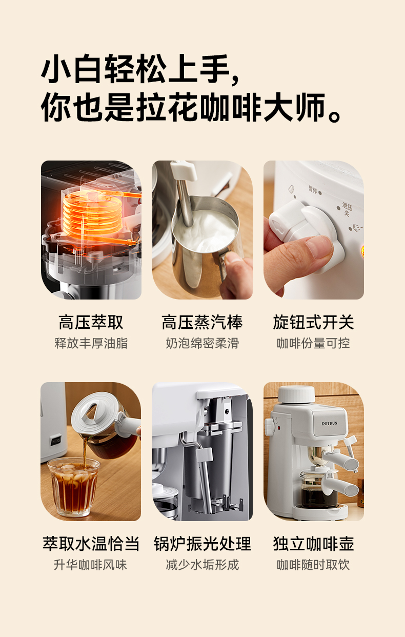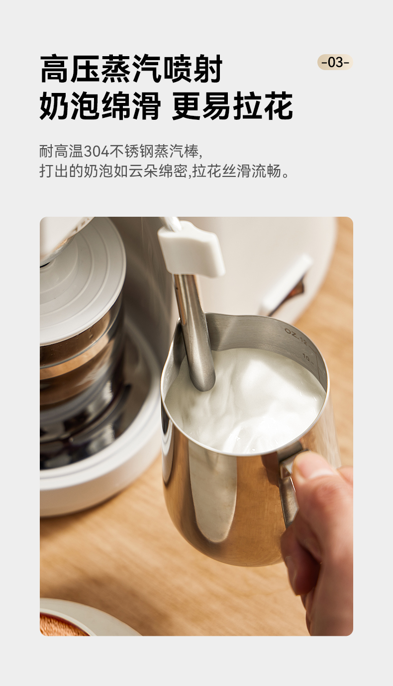 高温萃取,轻松DIY花式手作咖啡,高压蒸汽棒,奶泡绵密柔滑,更易拉花,