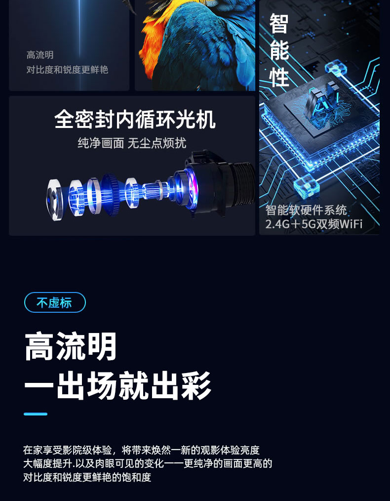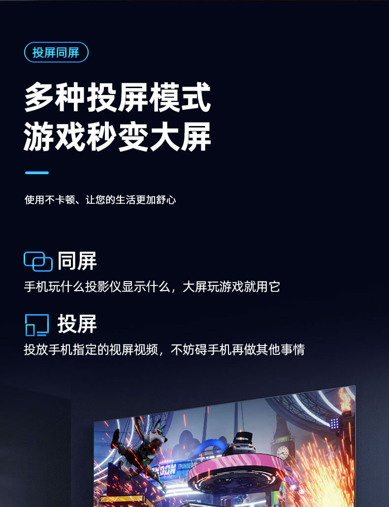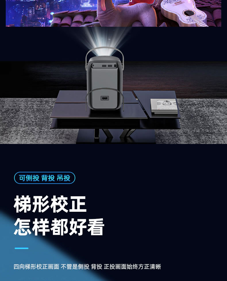 自带安卓系统,海量在线影视,小巧精致,便于携带,四点梯形校正画面,观影更加清晰,智能旗舰芯,性能一步到位,高亮度极色炫彩,还原真实影像。