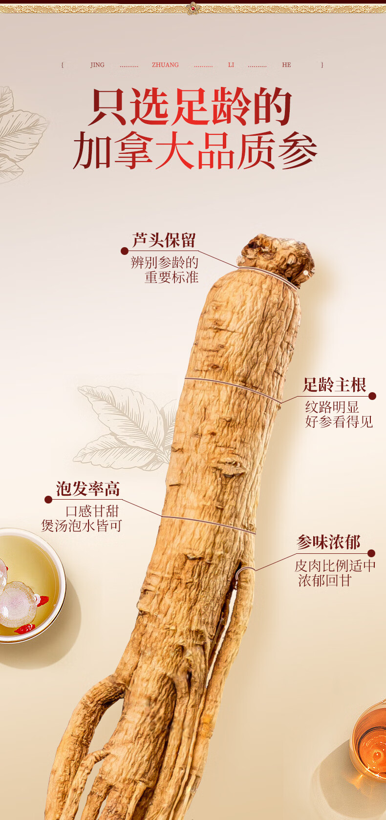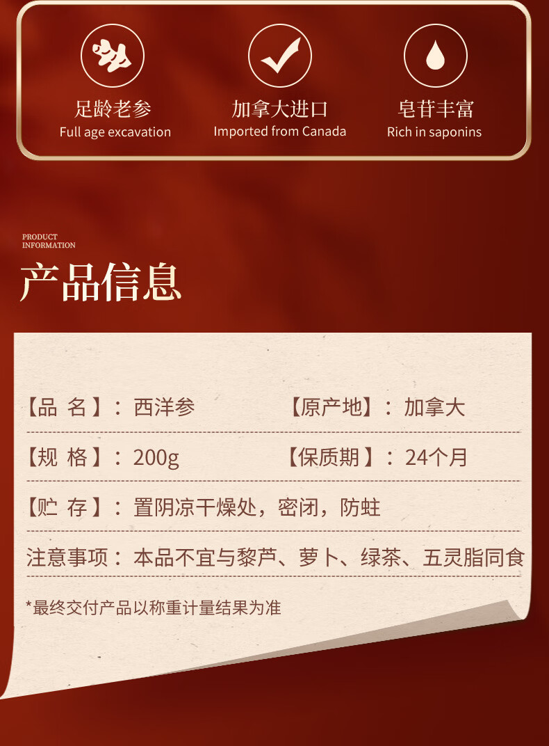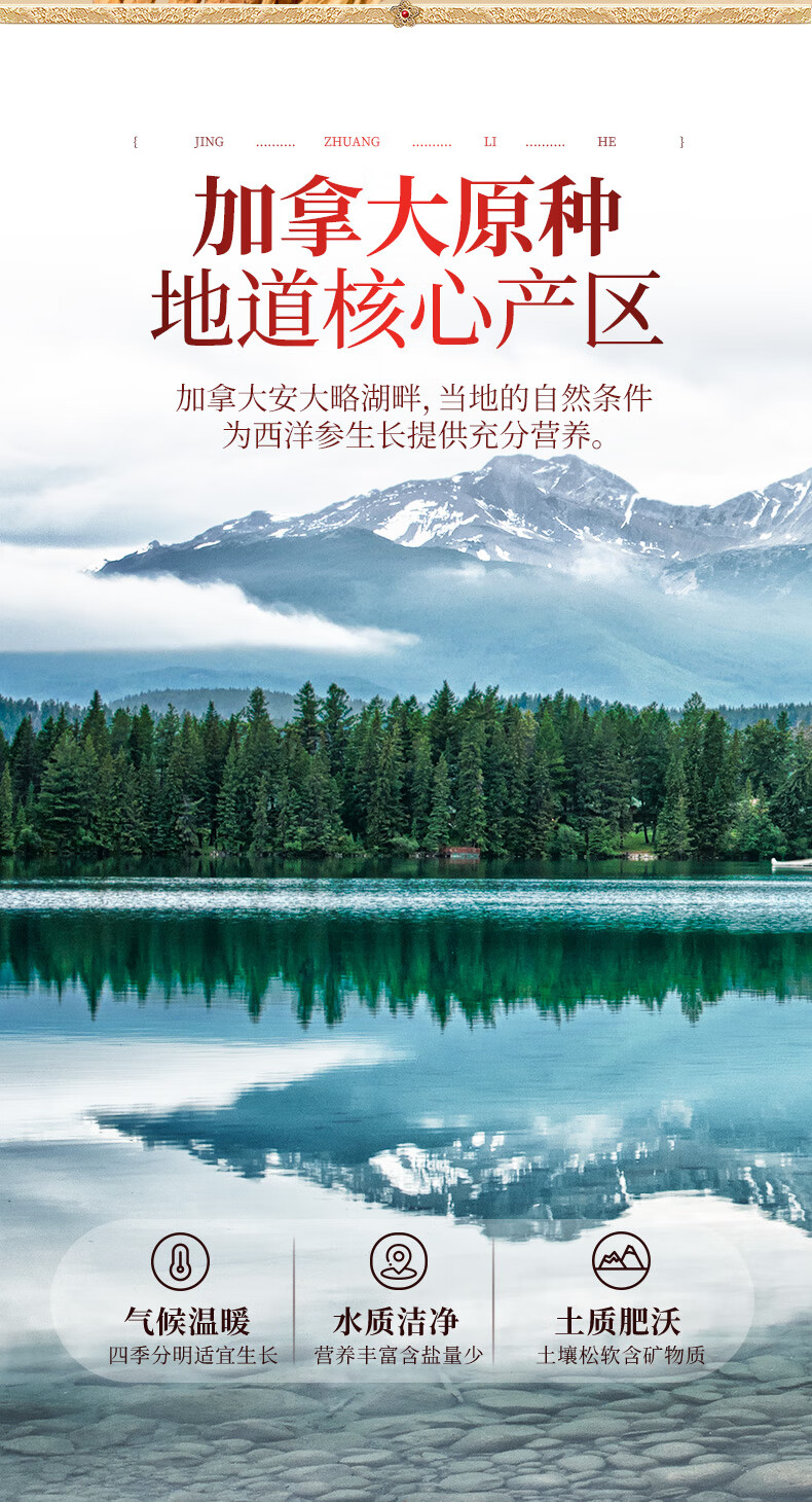 红色礼盒搭配亚克力盒装,装村品质西洋参,加拿大进口西洋参短支100g,足龄老参,皂苷丰富,加拿大安大略湖畔,当地的自然条件为西洋参生长提供充分营养。