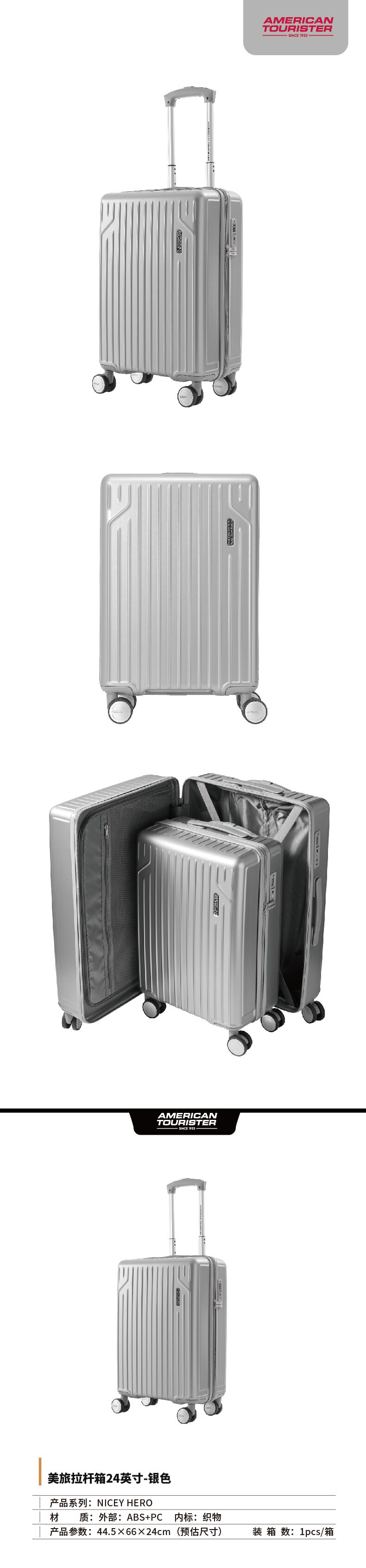 简约条纹设计,呈现金属光泽且防刮耐磨ABS+PC复合材质搭配磨砂工艺,坚韧抗压,不易变形小圆角造型,贴合箱内轮廓,容纳更多的物品金属品牌logo,光泽质感,和纹路完美结吉合嵌入式TSA密码锁,顺滑八轮,推拉平稳省力,舒适拉杆与提手,符合人体工学。