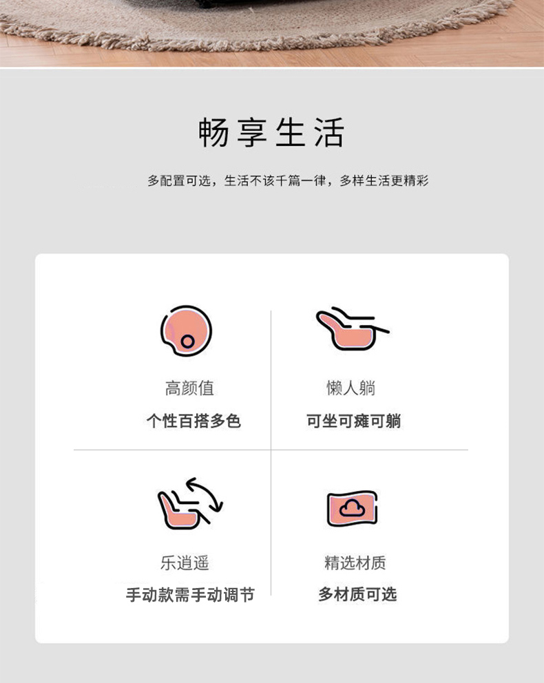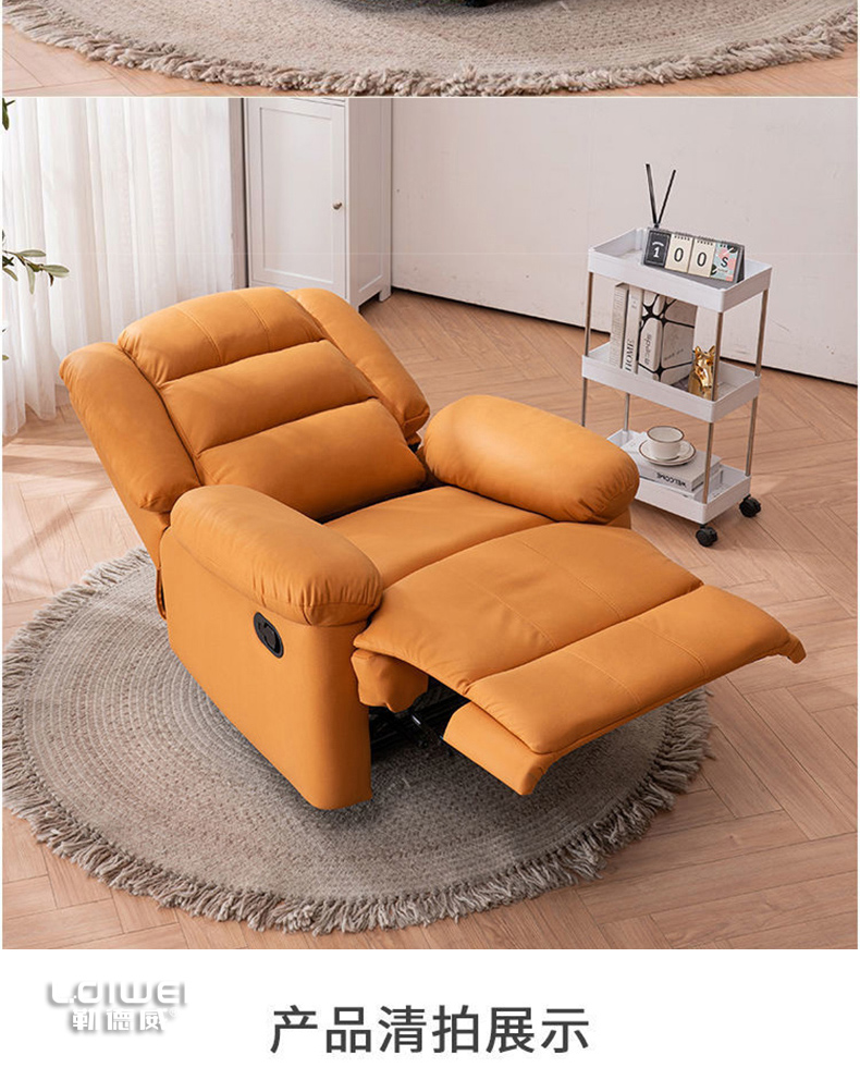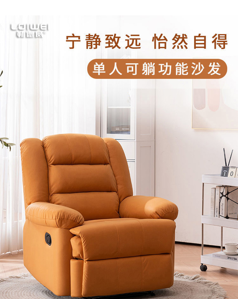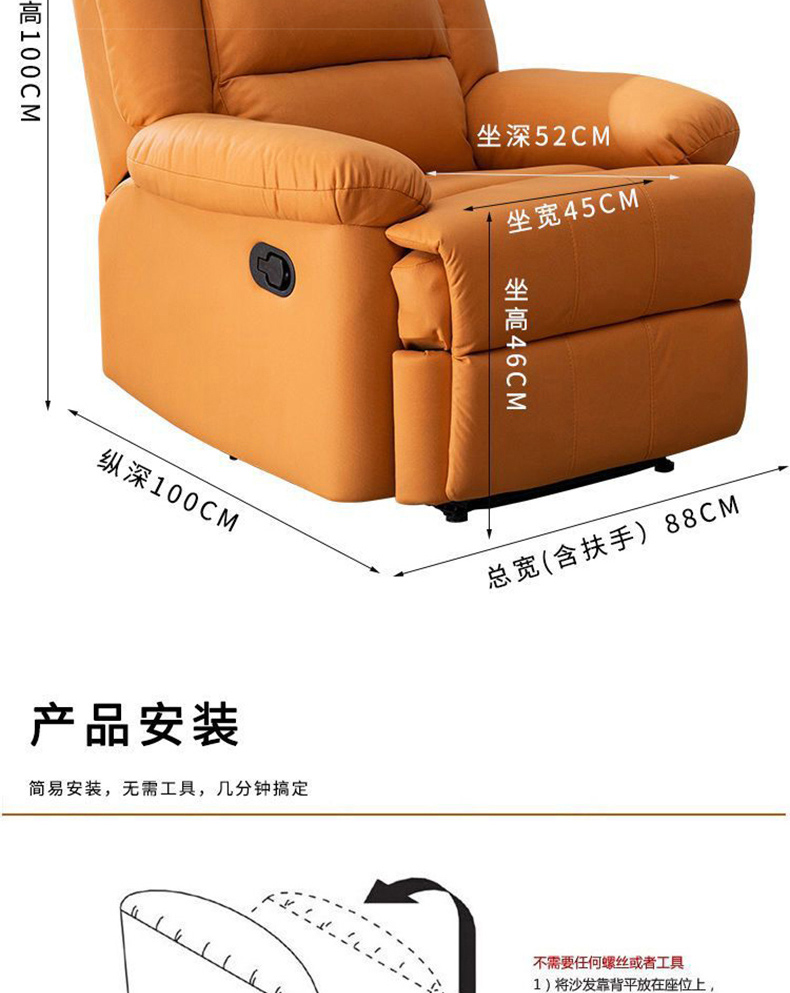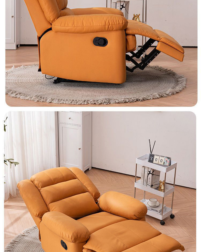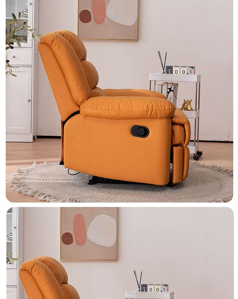 新升级款科技布,耐磨耐蹭易打理;靓丽炫酷阳光橙,让人眼前一亮;手动款可手动放平,角度固定,坐起后靠背自动归位,搁脚靠双腿收回;深层凹陷,柔软舒适;内物由高密度海绵填充,仿佛开启零重力。