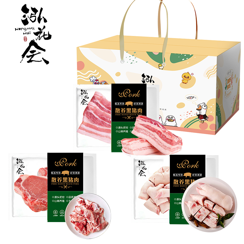 泓花会金猪送福黑猪肉组合(五花肉500g+猪腿肉500g+猪蹄500g)1500g